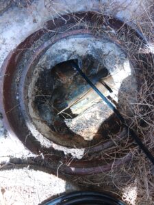 お伺いして点検させて頂くと、外に流れていく配管がつまっているのが確認出来ました。