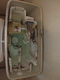 現地へ伺い点検させて貰うと、タンク内のボールタップ(水の出し入れを制御する部品)が正常に動作しておりませんでした。