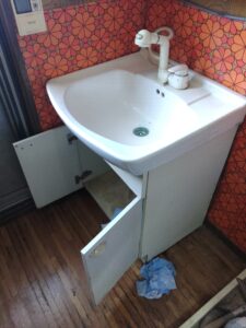状況をお伝えすると、「長い間放っておいた結果、今回こんな状況になって怖かったので、しっかり配管から洗面台まで新しく作り直して下さい。」とのご要望で洗面台を取り外し、配管をやり直した上で新品の洗面台に交換させていただく事になりました。