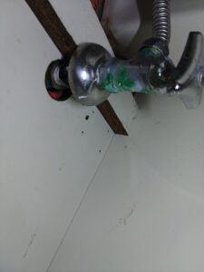 ご了承を頂いてさらに詳しく点検すると、洗面台の止水栓が経年劣化によりポキッと折れてしまっており、それが原因で水が吹き出してしまったようです。