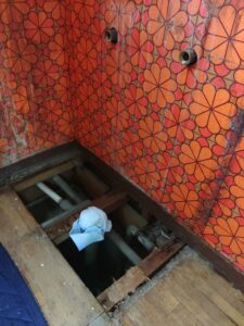 お伺いして状況を確認してみますと、洗面所の床が水浸しになっていました。