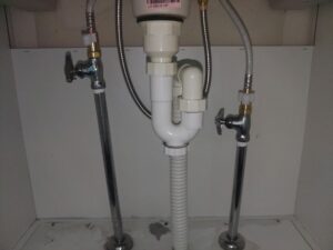 取り付け後水漏れのチェックと通水のチェックを行い、どちらも問題なくクリアし、作業完了となります。