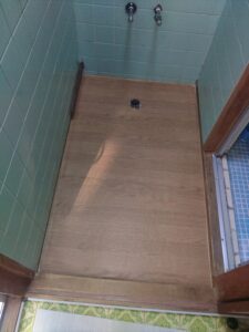 洗面台のサイズは同じサイズで、床のクッションフロアも何とかできないかとの事でしたので、クッションフロアも張替えさせて頂く事になりました。