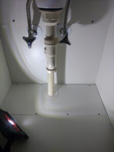 張替え後新しい洗面台を設置し、水漏れチェック・動作確認をしっかり行い、お客様に確認後作業終了しました。